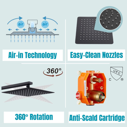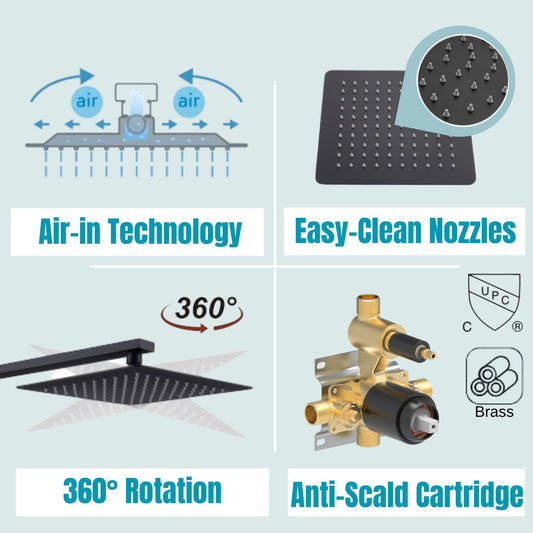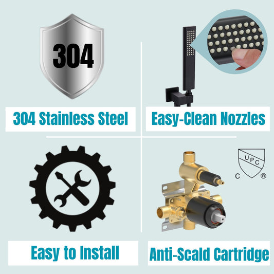 Waterpar® 1-Spray Square Shower System Fixed Shower Head and Tub Faucet with Hand Shower in Matte Black (Valve Included)Regular price From $313.00 USDRegular priceUnit price per-