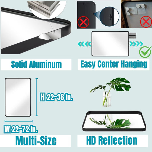Waterpar® 36 in. W x 24 in. H Rectangular Aluminum Framed Wall Bathroom Vanity Mirror