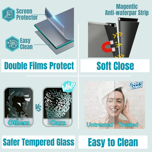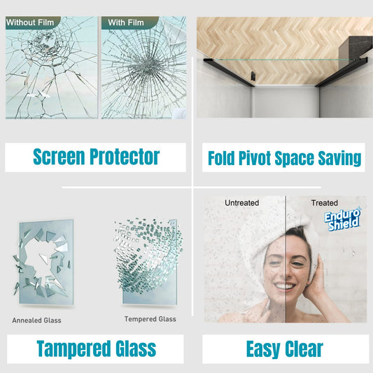 Waterpar® Bi-Fold Minimalist Frameless Shower Door Matte Black Clear Glass