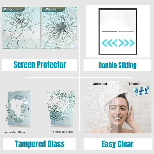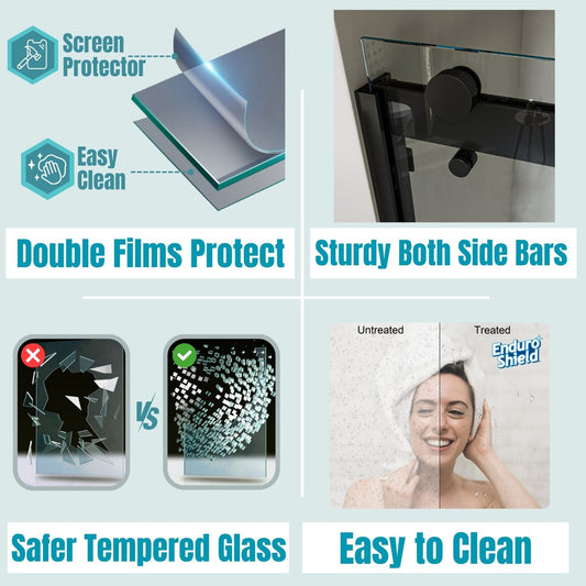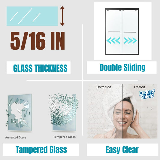 Waterpar® 56-60 in. W x 76 in. H Sliding Semi-Frameless Shower Door with Double Handle