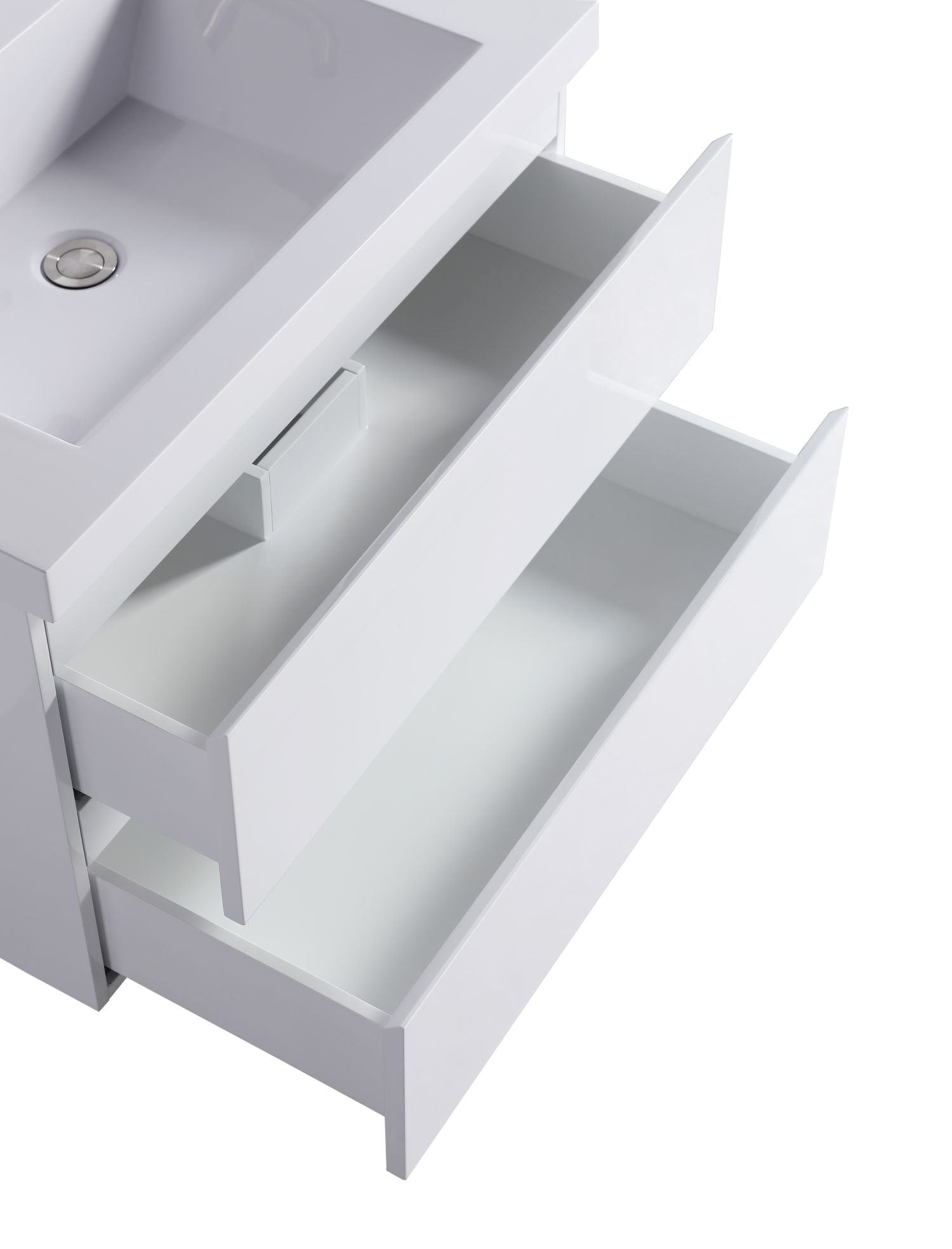 Space-saving design: wall mount design not only save space for your bathroom, but also is easy for cleaning water on floor, the drawers offer an extra big space for storage and make the room clean and tidy.