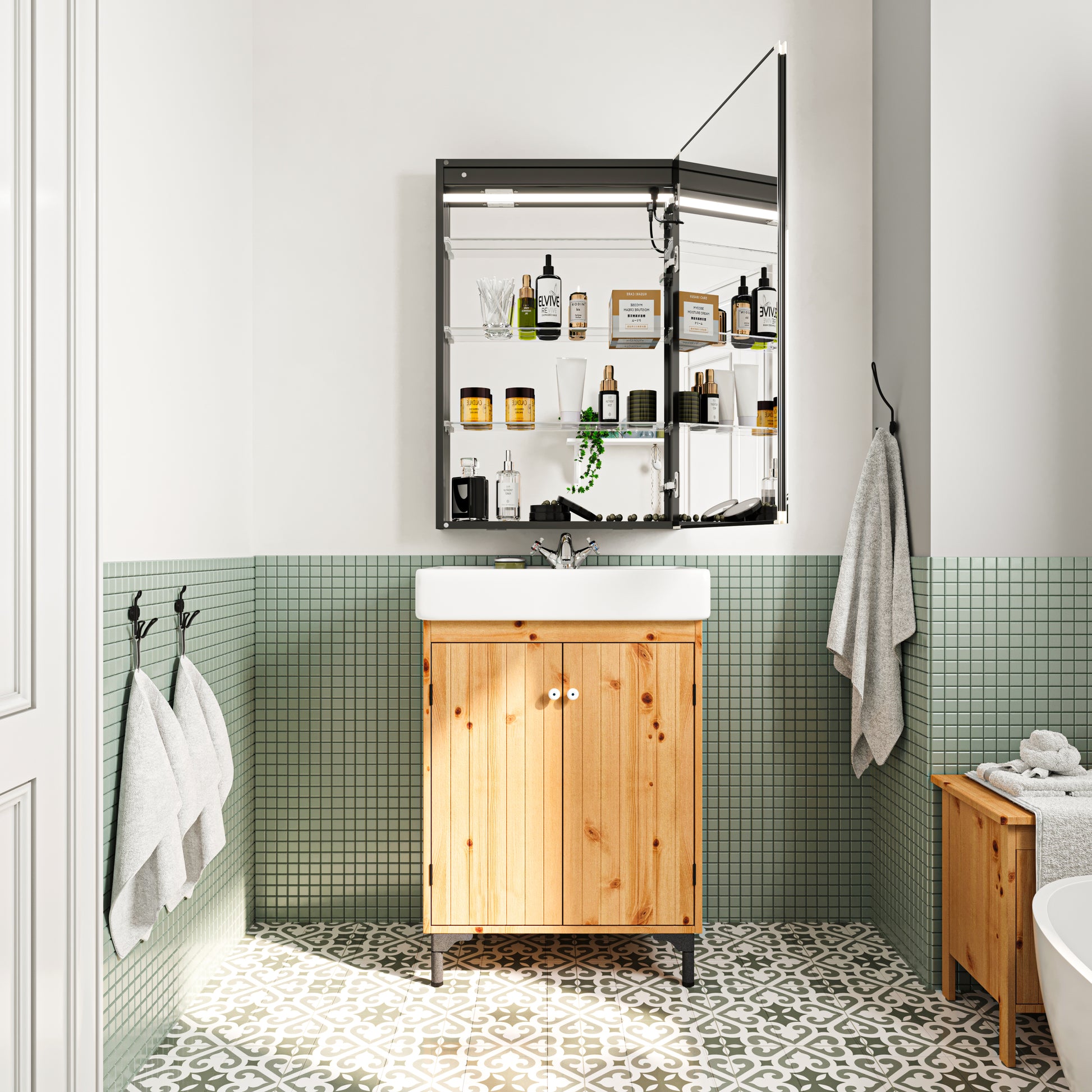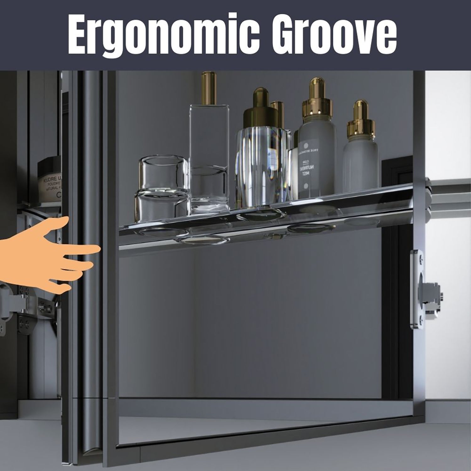 - In & outside Mirrors : mirrors are usable whatever cabinet is closed or open, and lights up when you open the door, making it convenient. Two opening directions available.