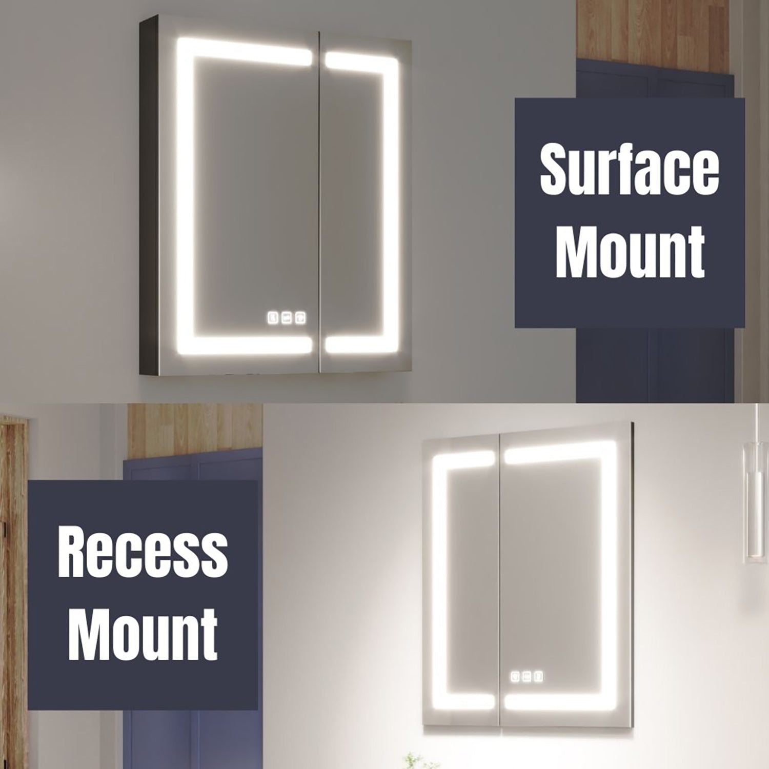 Waterpar® 24 in. W x 36 in. H Rectangular LED Aluminum Recessed/Surface Mount Medicine Cabinet with Mirror