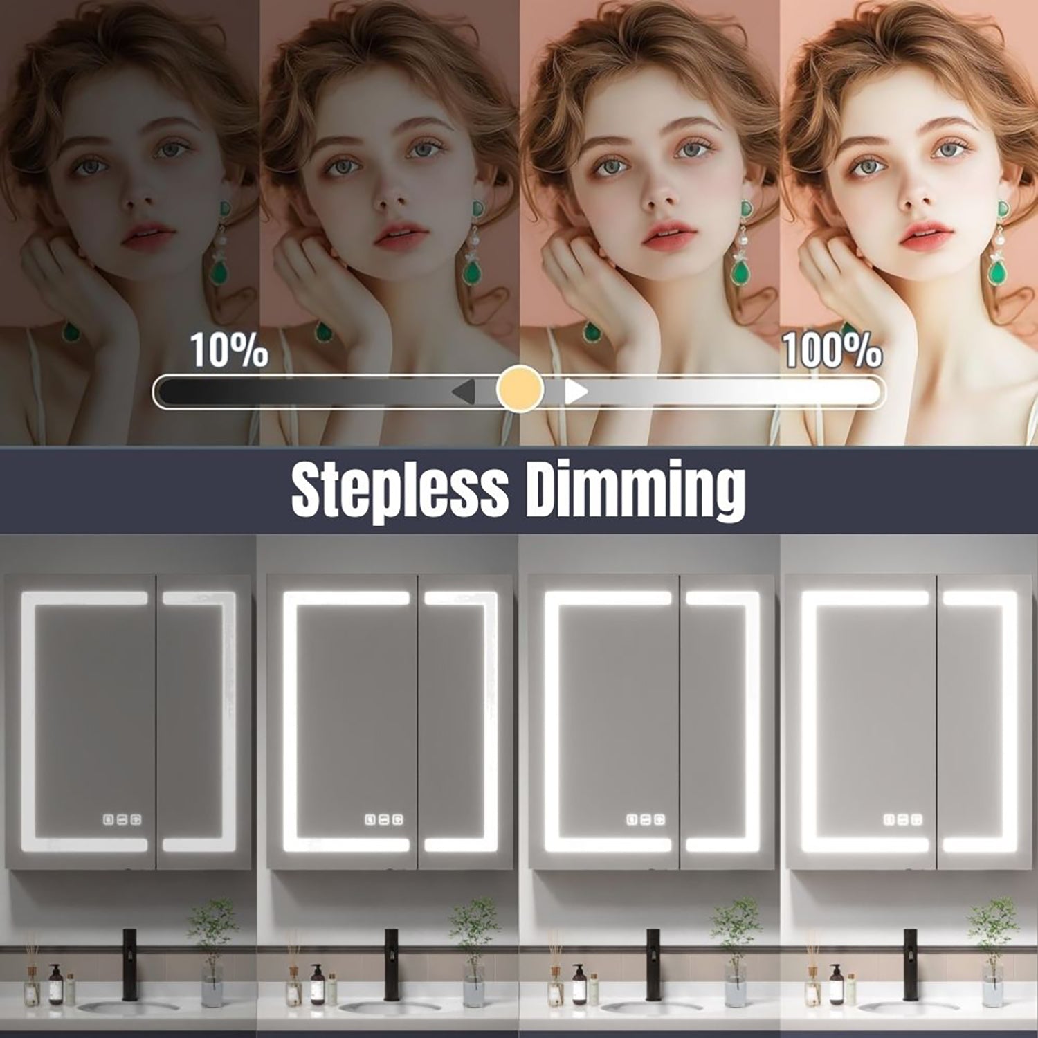 - Adjustable Lighting:press the mirror button to adjust the lightness from 10% or 20% to 100%. Moreover, you can enjoy enough light for the light strip at the bottom.