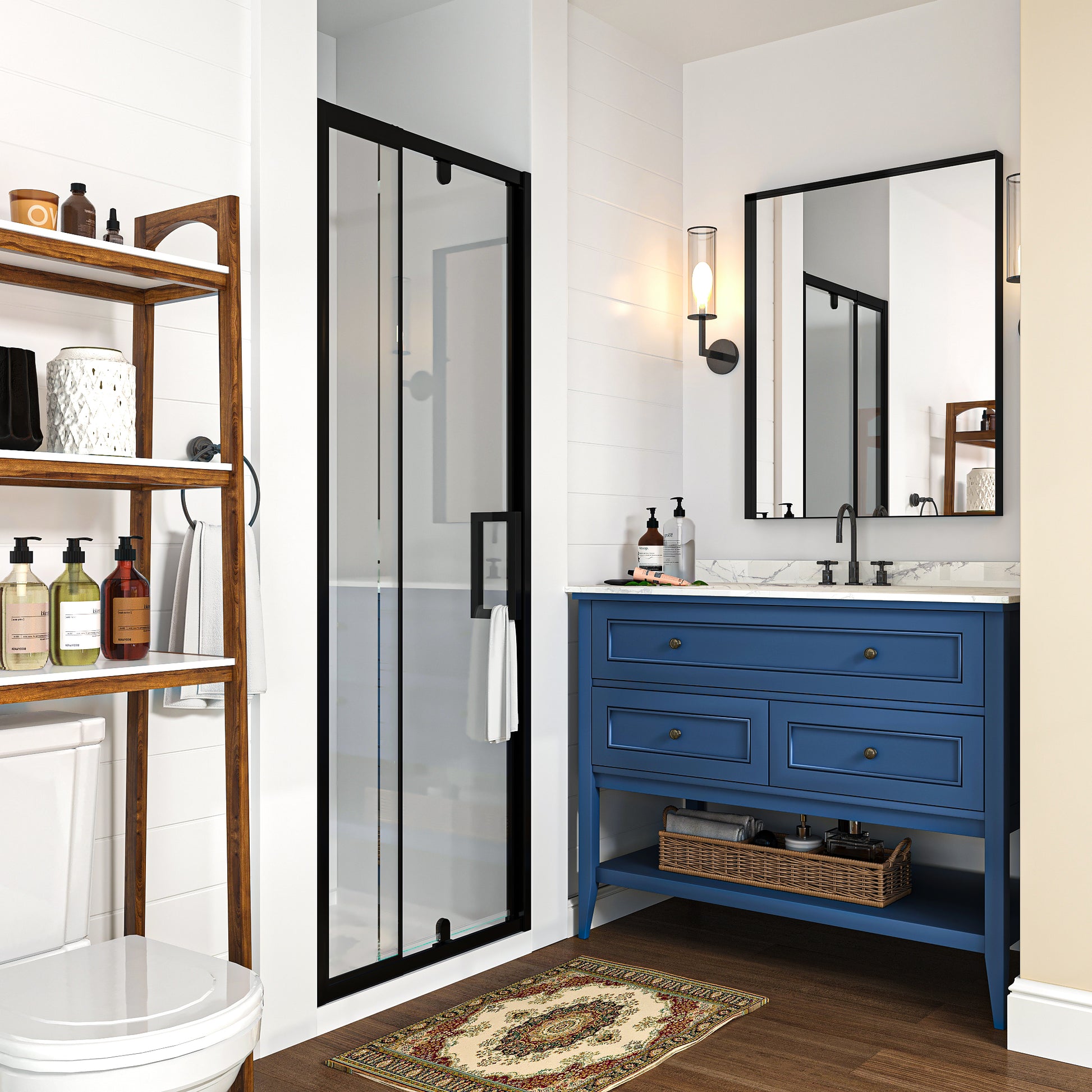 Waterper® 28 in. to 32 in. W x 72 in. H Framed Pivot Shower Door in Black with Clear Glass